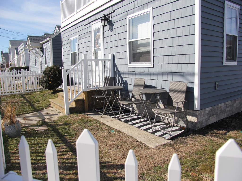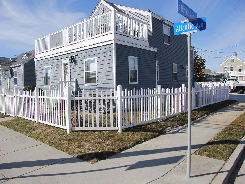 Beautifully Renovated 1st Floor of a Duplex on the Corner of Morning Glory and Atlantic Ave. This property located just a block to the Beach has central air and an off street parking space. The Large granite kitchen center island is the key focal point of this masterfully designed kitchen. The White cabinets, gray and white tile Back splash and stainless package are perfectly paired. This home has been tastefully decorated. This Condo has its own Personal Laundry room with full size washer and dryer. This home has a private fenced yard for this unit only. Just 1 block from the Southern end of the Boardwalk, this unit is perfect for those that are looking for quiet enjoyment. Master bedroom has a queen bed. Second bedroom queen bed. Third bedroom pyramid bunk (twin on top, double on bottom) and another twin as well. Smart Tvs in each bedroom with a basic cable package.