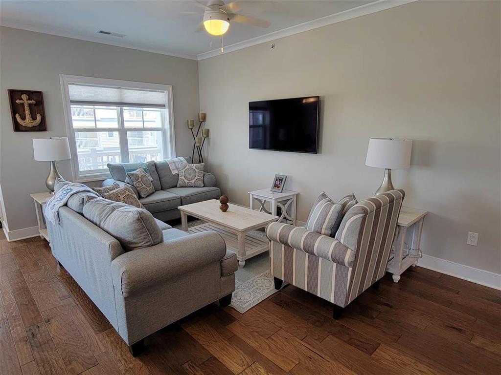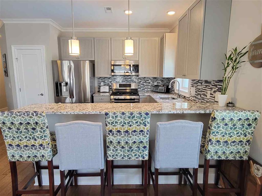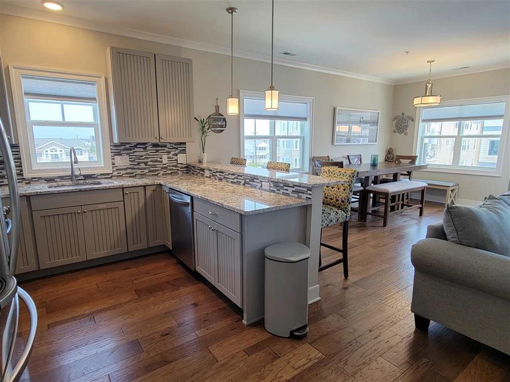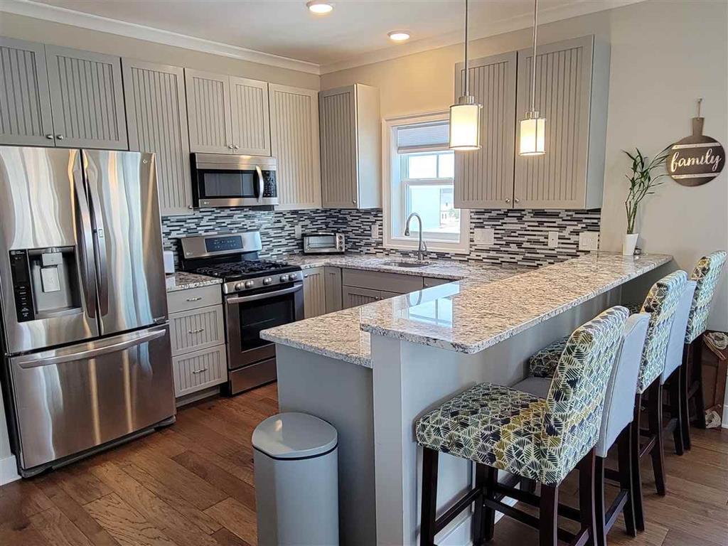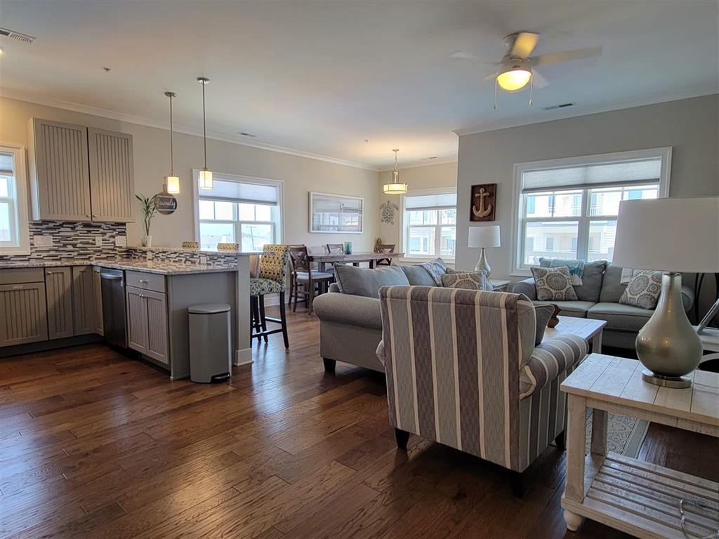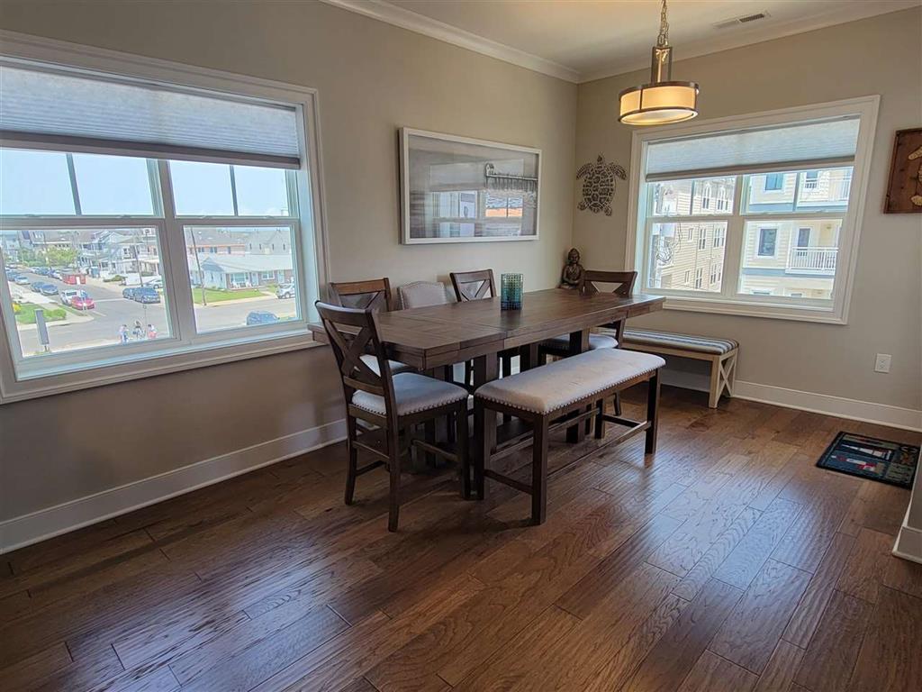 End Unit Condo with Heated Pool and Beautiful Ocean Views in Sunny Wildwood Crest! This Meticulously Maintained condo is loaded with upgrades including A Large Open Concept Layout, Plush Wood Flooring in the Kitchen, Living & Dining Areas and Hallway, Upgraded Kitchen Cabinetry, Granite Tops complete with Glass Tile Back-Splash, Stainless Steel Appliances, Master Suite Bathroom Boasts a Gorgeous Huge Shower with Glass Doors. A tremendous location just a short block to our Award Winning Beaches, a short stroll to the playground, bike path and of course Free Summer Concert Series at Centennial Park. Pool Area complete with Tables and Lounging Chairs, Natural Gas BBQ area, Outside Shower and Convenient Secured Bathroom. Enjoy 2 Car assigned Parking and Private Ground Floor Storage Room with extensive custom shelving for all your beach gear, bikes, chairs, games etc.