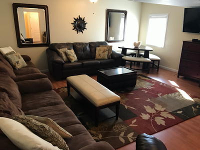 comes with a 70 Flat Screen Smart TV and lots of seating, plus a large