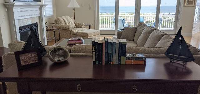 Have an amazing Ocean City vacation overlooking the beach. Excellently maintained and styled, 4 bedroom 4 bath vacation rental. View of ocean in an open floor plan and additionally from the master bedroom. Large wrap around deck provides an ability to enjoy the view from outside. Sunrises are amazing. For when you want to stay in, there is a two zone HVAC unit to keep things comfortable, a Jacuzzi and a gas fireplace for relaxing nights. Enter this desirable southern Ocean City unit through a beautifully landscaped entrance. Come up to the second floor in the privae elevator. Comfortably sleeps 8 with two garage spots and two additional outside parking spots. It is near two lifeguard stands, the 57th street lifeguard station and hiking trails in Corson s Inlet. It is 1.2 miles and 4 minutes from Corson s Inlet Boat Ramp and there are local food options a quick 3 block walk away. The house has a HDTV, DVD player, WiFi, Digital locks, Roku unit for streaming, electric retracting awning, high end 75 gallon fast heating water heater, high end new stainless steel appliances, fans in the main room and all bedrooms, a gas grill, the ability to borrow 5 beach tags, beach umbrella with screw in stand, beach cart, multiple beach chairs, two bicycles and boogie boards.
