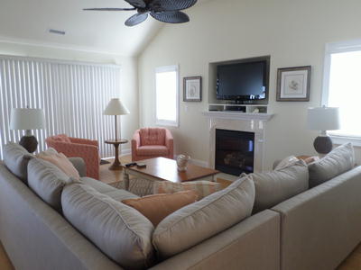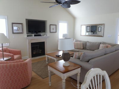 Enjoy beautiful ocean views from newly redecorated living room and porch furniture along with newly recarpeted bedrooms. Six beach tags provided and also restaurant style high chairs for young guests.