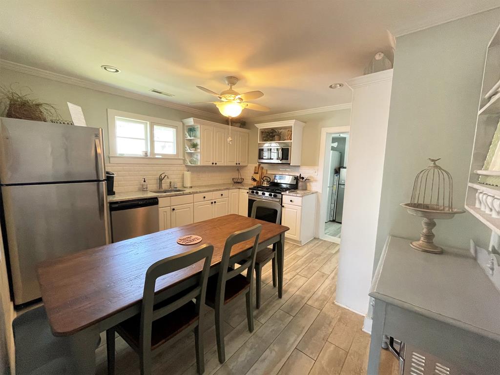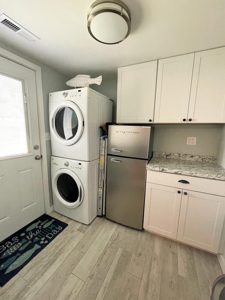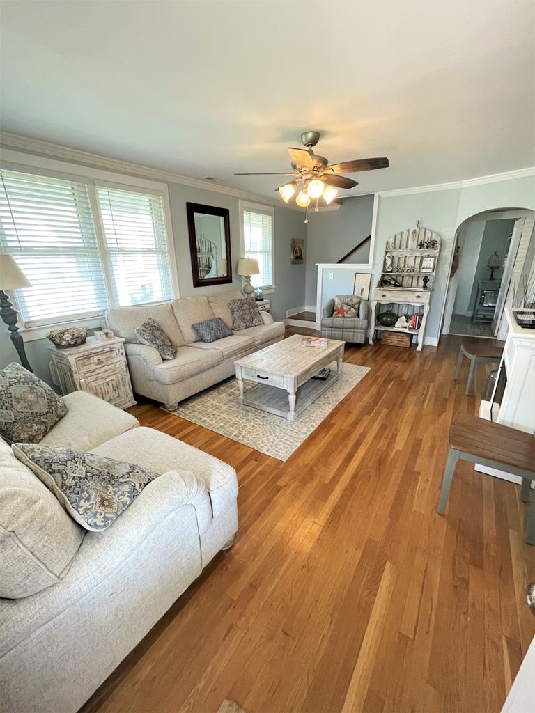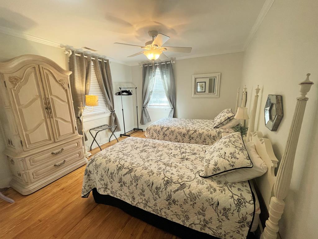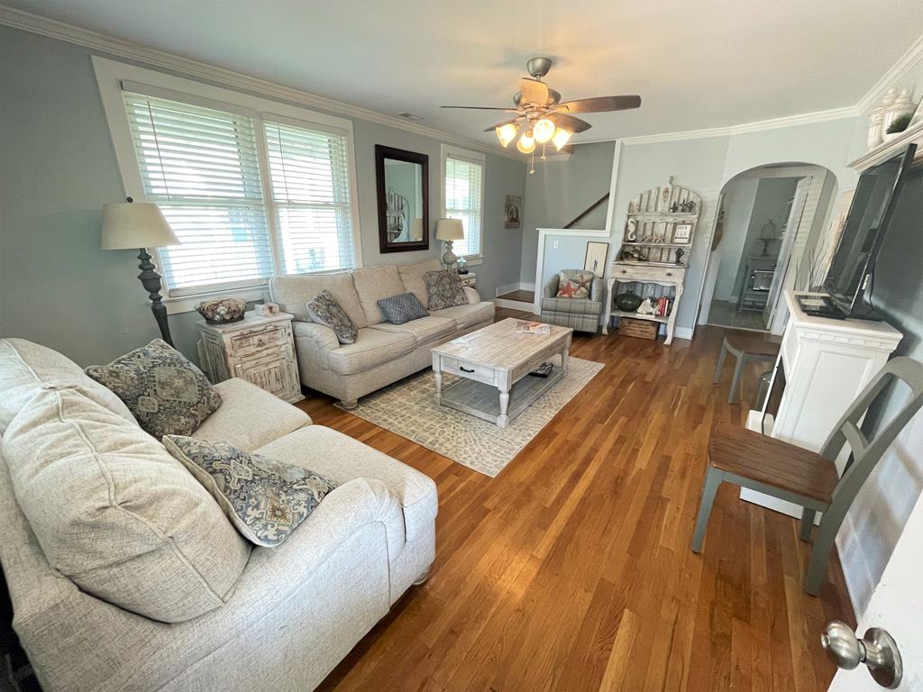 The cheerful, seashore whimsical décor will soothe your soul. There are 4 bedrooms, 2 down and 2 up, all with tvs, along with two full baths on the first floor and a new powder room upstairs. For gathering, there is comfy living room with a large screen tv, a fully equipped eat-in kitchen, a front porch, and ample yard area for the kids to play. The home is set in a quiet residential neighborhood that is within an easy walk to either the beach or downtown. Look no further - this is it!