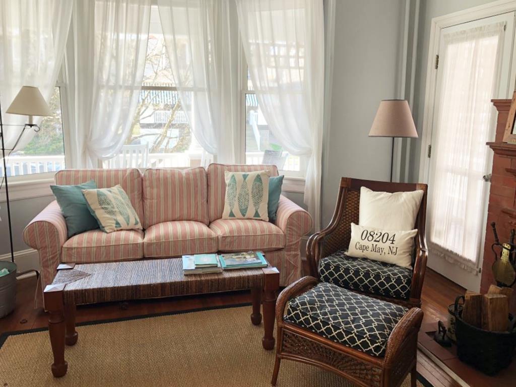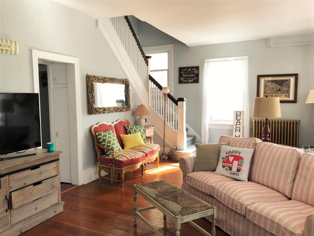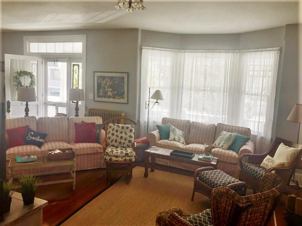 New to the rental market ! A true Cape May classic one block from the beach & a short walk to town. Perfect for large families ! A stunning mahogany wrap-around porch invites relaxed outdoor living with wicker furniture, rocking chairs & dining table. Inside, enjoy a large living room with flat screen TV, decorative fireplace & comfortable seating. The living room opens into a large dining room well-stocked with dinnerware & glassware. A new chef’s kitchen offers upgraded stainless steel appliances, AGA stove, wine fridge & cozy seating area overlooking the backyard. Also on the 1st floor is a newly renovated full bath, as well as access to a full basement with washer & dryer. The 2nd floor offers 5 bedrooms & 2 full bathrooms. Three of the bedrooms have queen beds & one of these bedrooms adjoins to a small bedroom with 2 twin beds. The master bedroom features a king-sized bed, comfortable chairs & TV. The adjoining master bath has a clawfoot tub/shower combo as does the additional full hall bathroom on the 2nd floor. The spacious 3rd floor has 3 more rooms, all with window seats, 1 with an ocean view. A “lounging” bedroom has a TV & sofa with a queen-sized pull out bed. The 2nd bedroom features 2 antique twin beds & a daybed that opens to a queen-size bed. The 3rd bedroom offers 2 antique twin beds & a couch. There is a 4th full bath on this floor with a clawfoot tub/shower combo. Outside you’ll find a driveway with off-street parking for 3 cars & landscaped yard. Enjoy use of our grill. A great house combining yesterday’s charm with today’s conveniences ! Contact Jersey Cape Realty directly for real-time availability & best pricing ! (609)884-5800 or rentals@jerseycaperealty.com