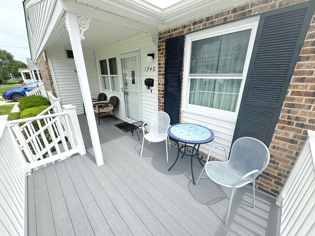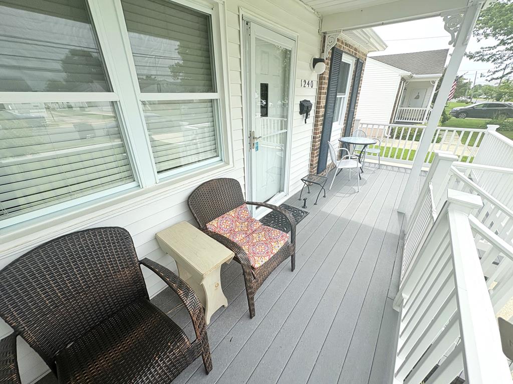 The enlarged front porch has two seating areas and is a great place for a morning cup of coffee or late afternoon glass of wine.