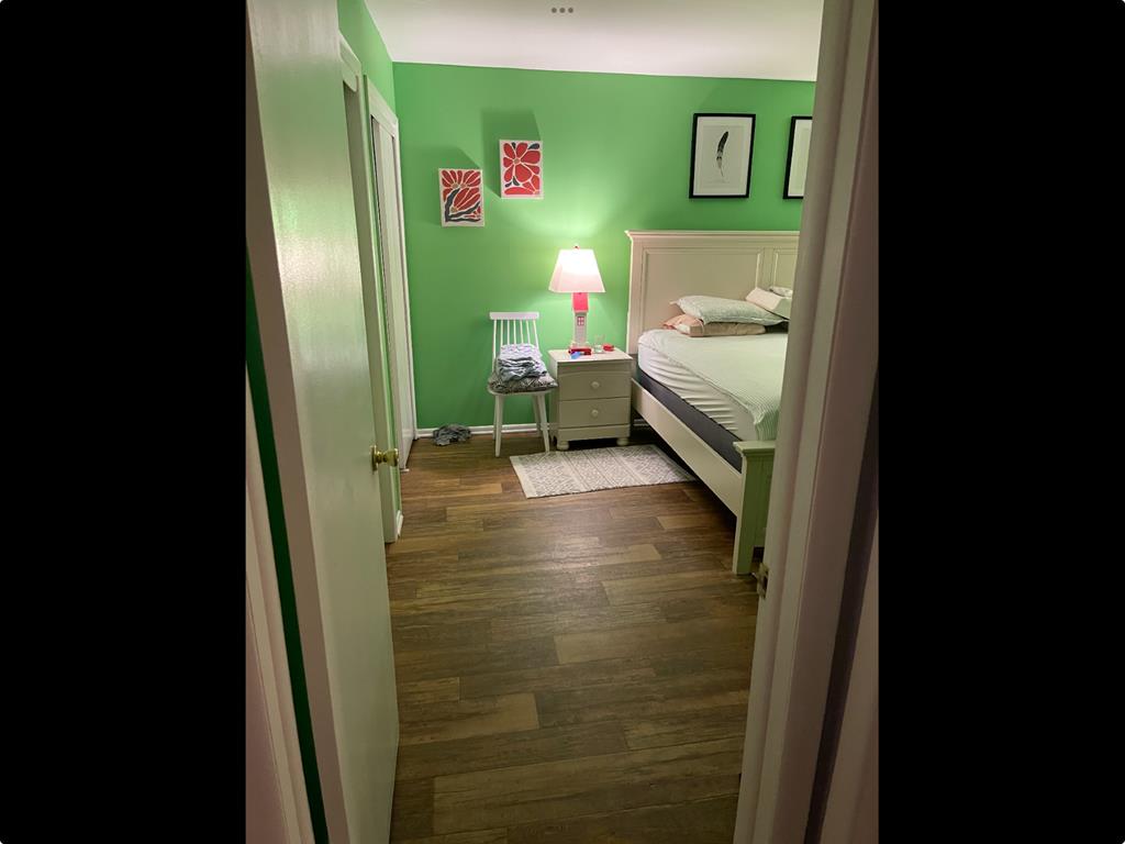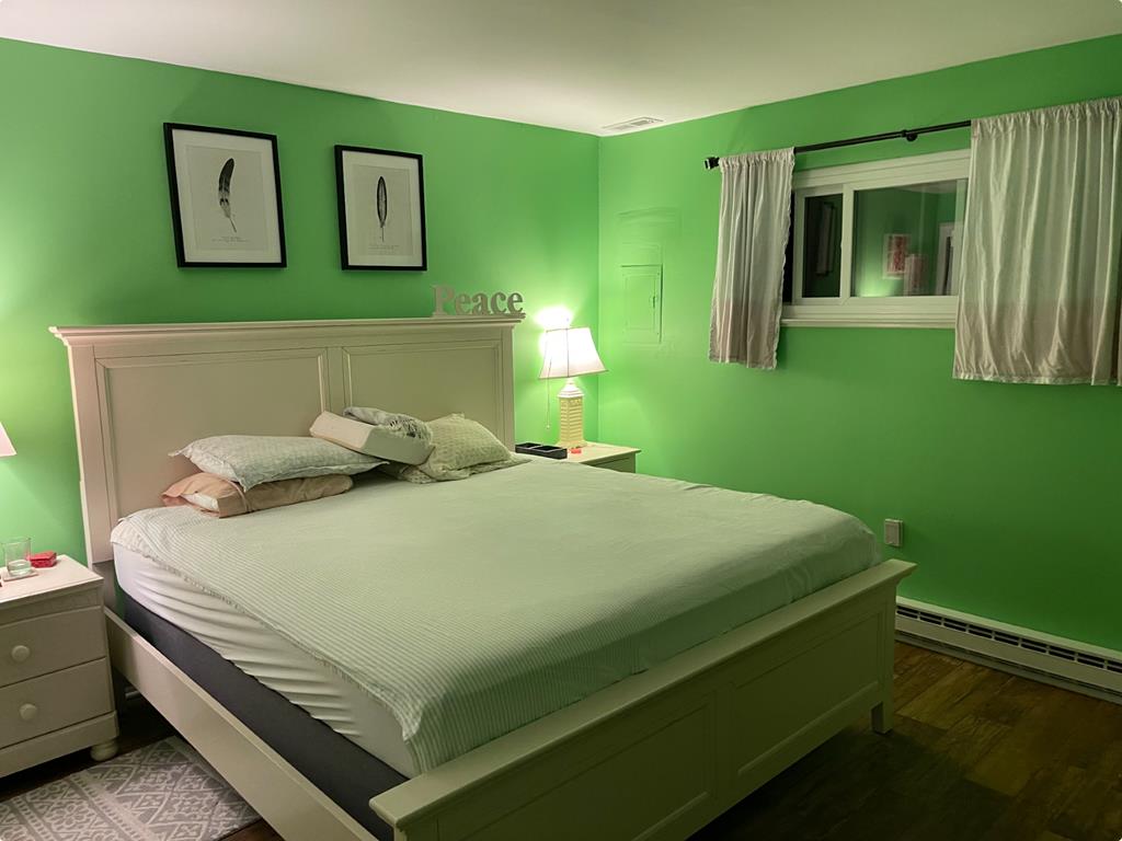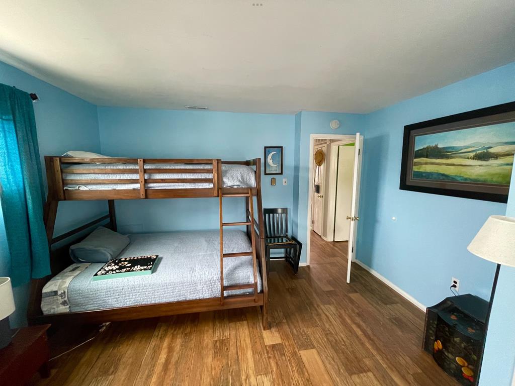 There is an eat in kitchen with lots of light and a table that seats six. The master bedroom has a California king-sized bed, side tables, dresser, and big double closet. The second bedroom is the "bunk room". A full mattress on the bottom with a twin mattress on top, great for flexibility and families. The master bedroom and bunk room are both right next to the full bathroom. The third bedroom is a converted porch that was insulated to become part of the indoor house. To access this bedroom you must go through the second bedroom "bunk room". Third bedroom has its own thermostat.