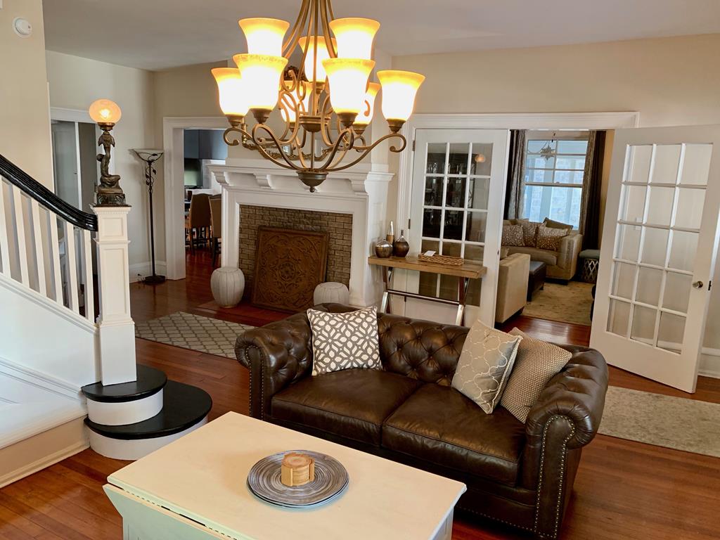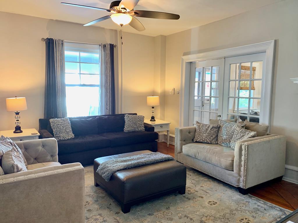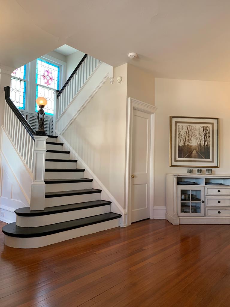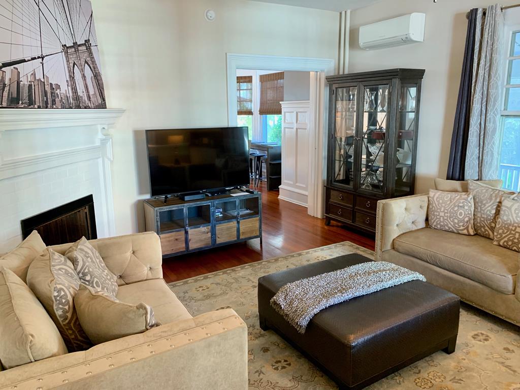 Welcome to The Big House! What makes our house different? THE LOCATION. It’s THE place to be! Come vacation in the center of it all without the noise or traffic. Our house is located in Cape May Proper on a lesser-traveled portion of a one-way street, yet smack-dab in the middle of everything! You’ll be amazed at how tranquil the location is, while being in the center of the Historic District and steps to the pristine beaches of the Atlantic Ocean. This section of Hughes Street is a one block long, one-way cross section located between Decatur Street and Ocean Street… a little slice of heaven on earth.THE PORCH. When in Cape May, it’s ALL about the porch…and what a porch it is! Ours is one of the largest and widest (700 sq feet). The front porch measures 48 ft long with a screened-in side porch that is equally as wide and measures 20 ft long. There is plenty of outdoor space for your family and friends to gather and enjoy the beautiful streetscape of the neighboring multicolored Victorian homes. THE PARKING. Our ONSITE parking area, located directly behind the house, is one of the most spacious for a private home in Cape May Proper. Easily park 6 cars in designated spots for quick in and out, without having to move another family member’s car. Stack park additional cars (up to a total of 10) in the driveway when needed. Everything you need is within walking distance: beach, restaurants, shops, grocery store, parks and more. HISTORY OF THE HOUSE. Our house was custom built in the early 1900’s to specifically accommodate the new Reverend of the Presbyterian Church located next door. A small Victorian cottage was moved from this location in order to build this much larger home with its more open/modern floor plan, which was not the typical design used in surrounding Victorian houses of the 1800’s. You’ll notice the stained glass windows, which are original to the house, bear the fleur-de-lis signifying the symbol of the Holy Trinity and fitting for the Reverend’s expansive new manse. THE SPACE. Maximum of 20 guests -- adults and children, Second floor (sleeps 10): 4 bedrooms, 4 bathrooms, Third floor (sleeps 12): 4 bedrooms, 2 bathrooms. There is a Newly remodeled full kitchen with induction stove-top, commercial hood fan, convection oven, drawer microwave, deep stainless steel sink, refrigerator/freezer with ice maker/water dispenser, under counter lighting, Butler’s Pantry with extra microwave, separate bar area with beverage refrigerator and sink, counter seating for 4, cable TV, Dining Room.