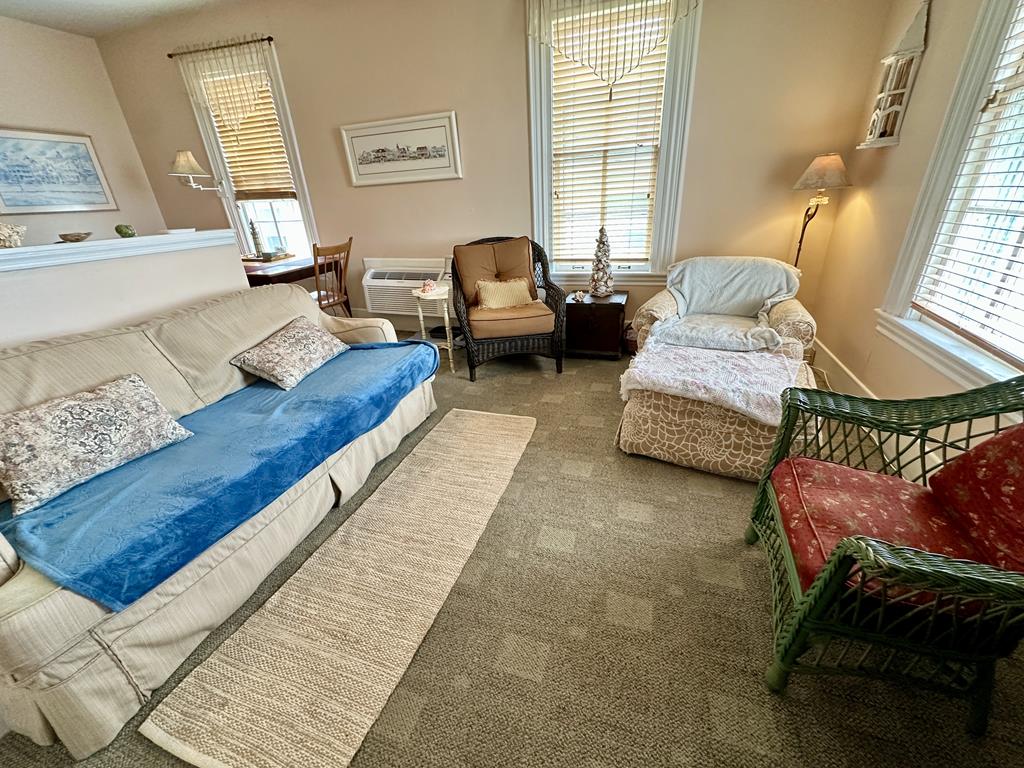 Baronet condo located on the second floor of the main building. Some ocean views from the living room. A very cozy two bedroom unit located across the street from the ocean and convenient for shopping and restaurants. One designated parking space on site. Enjoy using the common area front porch. Limited week bookings.