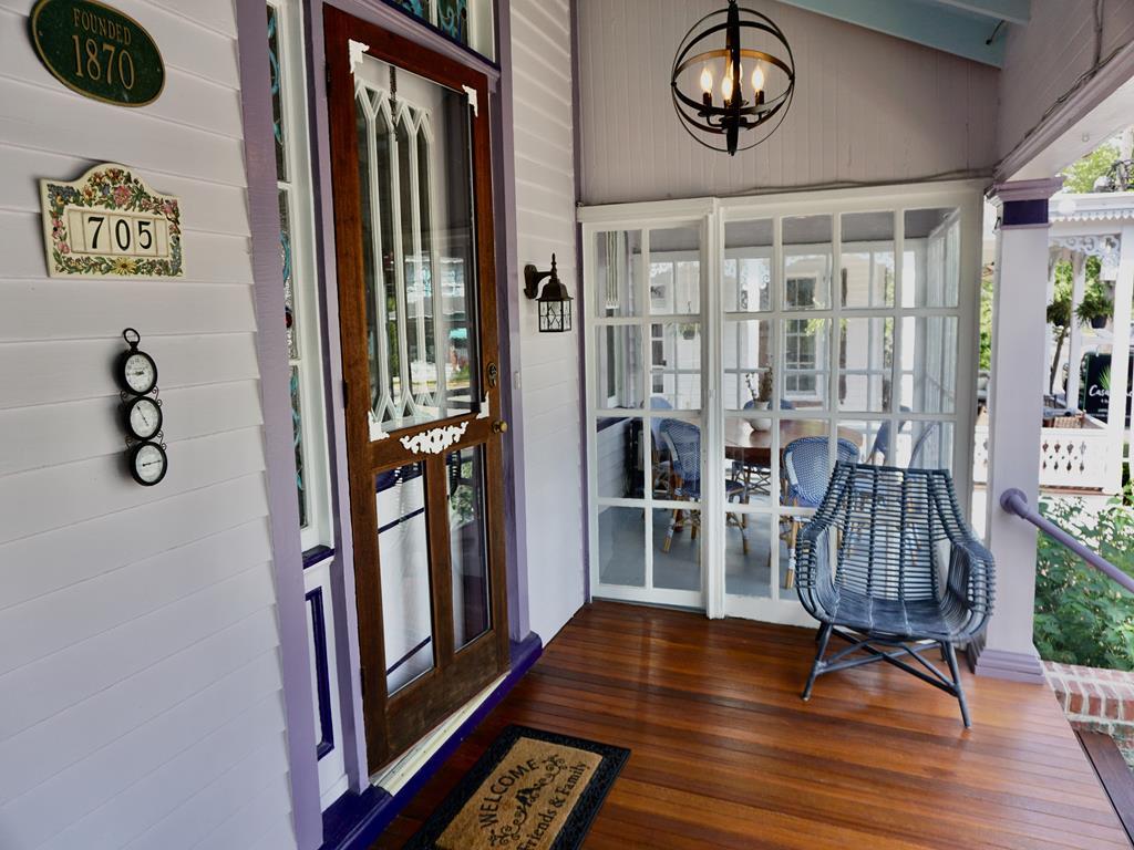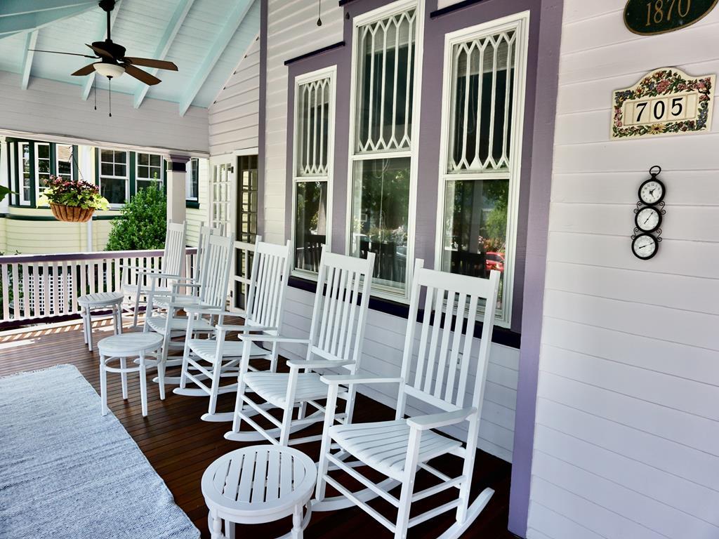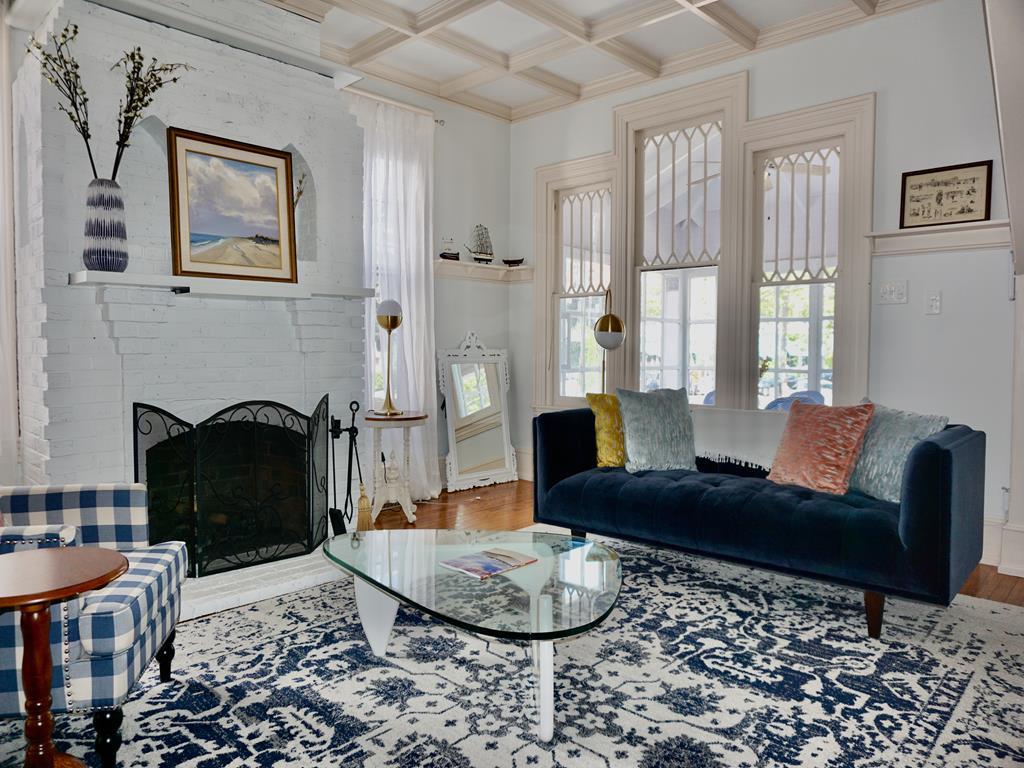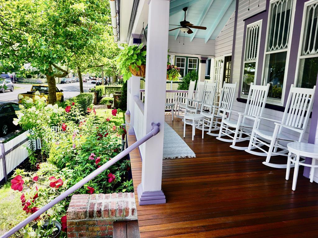 The Majestic Star – 705 Columbia Ave Located in the heart of Cape May’s historical district three blocks from town and two blocks from one of the most pristine beaches on the Northeast coast, the Majestic Star is an expansive home perfectly positioned to experience one of the most unique towns in America. The short walk along picturesque Columbia Avenue to the downtown restaurant scene, boutique shops, live music venues and more will take you by some of the best preserved Gothic Revival Victorian architecture in the country built with features modeled after the great churches of Europe. Our home was built in 1870 and past owners include one of the original great publishing families in the country, yet the interior has a decidedly modern beach feel. From either the open air porch or glass screened in area watch the horse-drawn carriage tours walk past or take a look across the way at the beautiful Chalfonte Hotel as they host weddings. The Majestic Star was cherished by previous owners for decades including a long stint as a B&B but we are excited to offer introductory rates for our first season renting the 8 bedroom, 6.5 bathroom house as a single entity to accommodate up to 20 guests. The already well preserved house will be undergoing additional renovations this spring including a new kitchen, floors, exterior paint, furniture and drape updates. One of our bedrooms is part of a rear attached cottage which is a perfect place for two guests to have a bit more privacy and also their own kitchen. Other interior highlights include a sun room located off our first floor bedroom with its own daybed and reading chair, several gas/electric fireplaces, a large formal dining room, and a well-stocked board game collection of our favorites. Outside our outdoor grill, dining area, and fire pit are perfect for summer night cookouts. We look forward to hosting you! The rear cottage is available for off-season rentals!