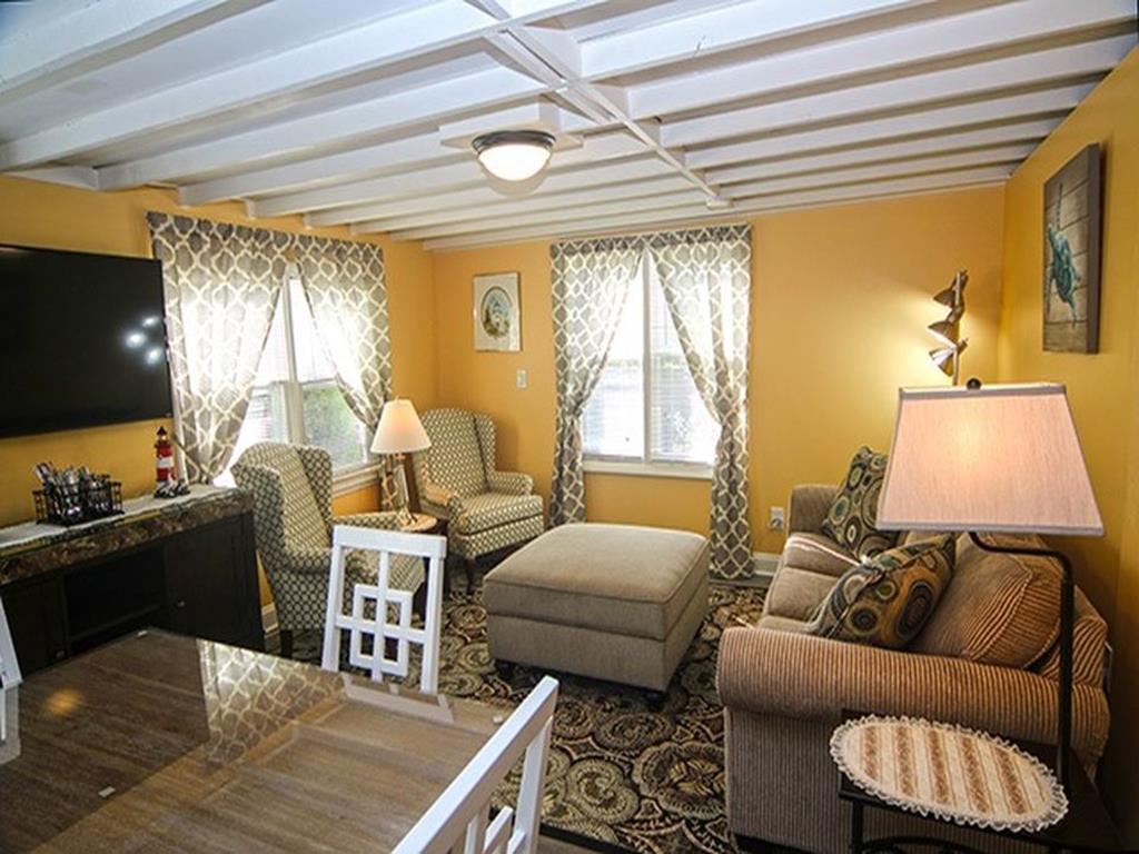 1 Bedroom, 1 Bath, Sleeps 2-4, 1 King Bed, 1 Queen Sofa Bed, Central Air/Heat, Beach Chairs, Beach Umbrella & Bikes