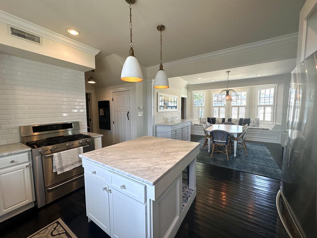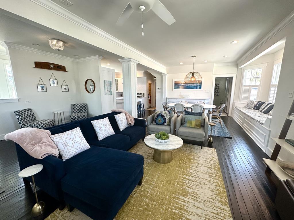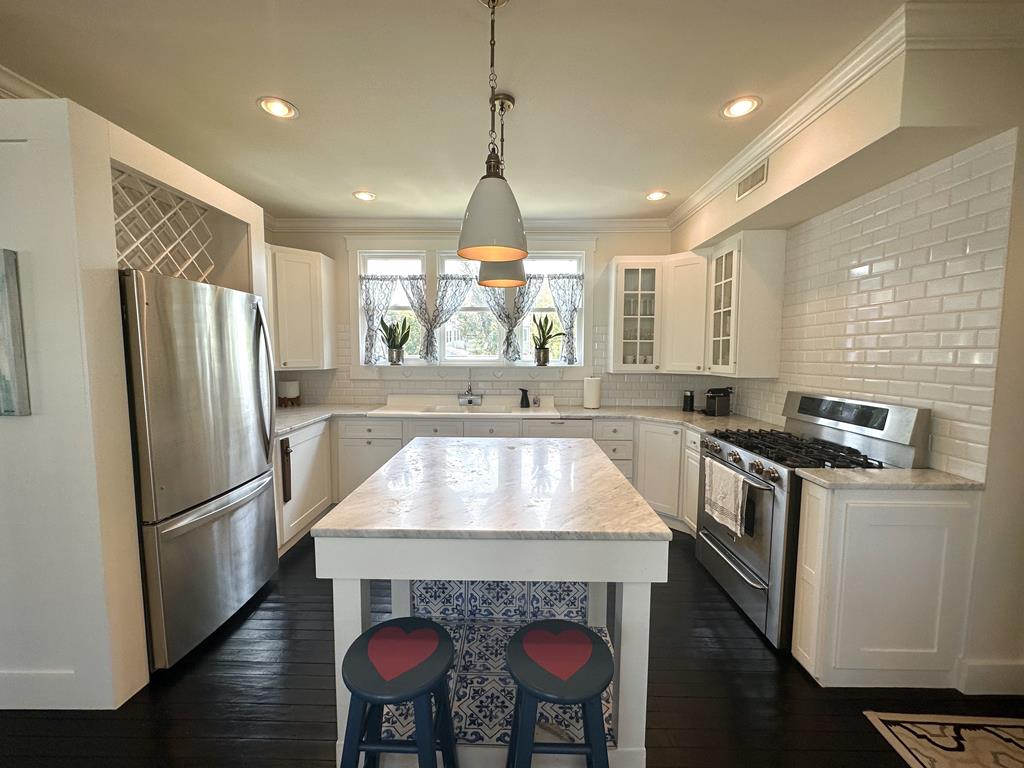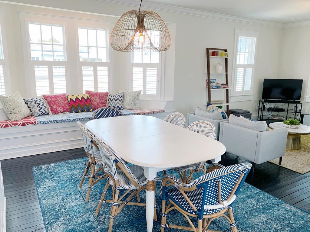 This is the perfect beach house for those who want to be close to the beach and close to the Washington Street Mall. Enter the house through the sun drenched enclosed porch into an open concept living room, dining room and gourmet kitchen. Tons of natural light make this space very inviting. This chef kitchen has a large island and is equipped with high-end natural gas range and stove plus an additional wall oven. There is a Nespresso coffee maker as well. At the back of the house is a master suite with walk-in closet and large master bath. The bath has dual sinks, soaking tub and separate rain head shower. There is a half-bath at the bottom of the second floor staircase. Upstairs are 2 large bedrooms and full bath and another sleeping, seating, or recreation area for your guests. Downstairs is still more room for you to use with another recreation room and playroom, which will have a sleep sofa.The fully fenced in back yard has ample space to play or relax on the beautiful outdoor furniture. This beach house has a boutique hotel feel with modern furniture and is just a 5 minute walk to the Washington Street Mall or a 10 minute walk to the beach. There is off street stacked parking for 4 cars. Other amenities include: larger washer/dryer, gas and charcoal grill, and extra pull out queen size couch.