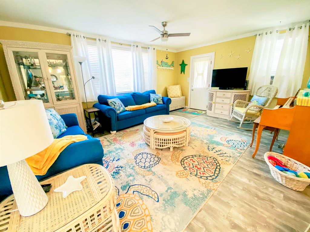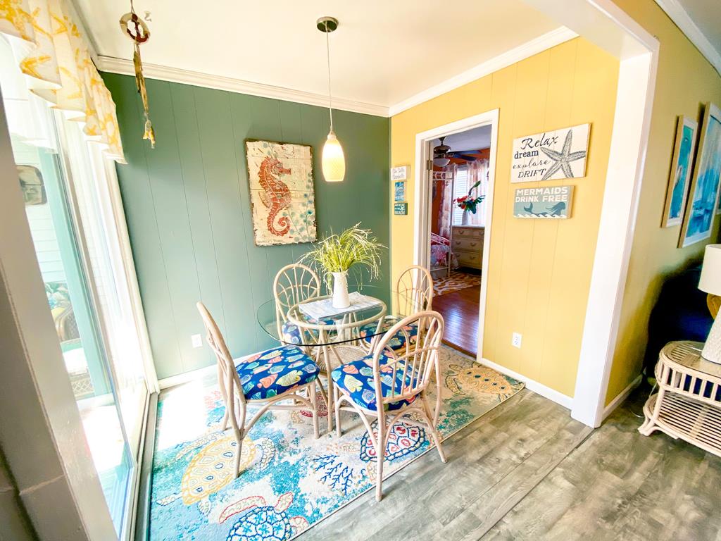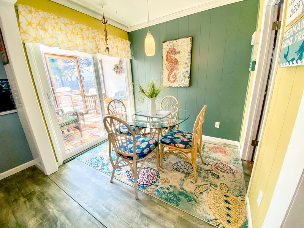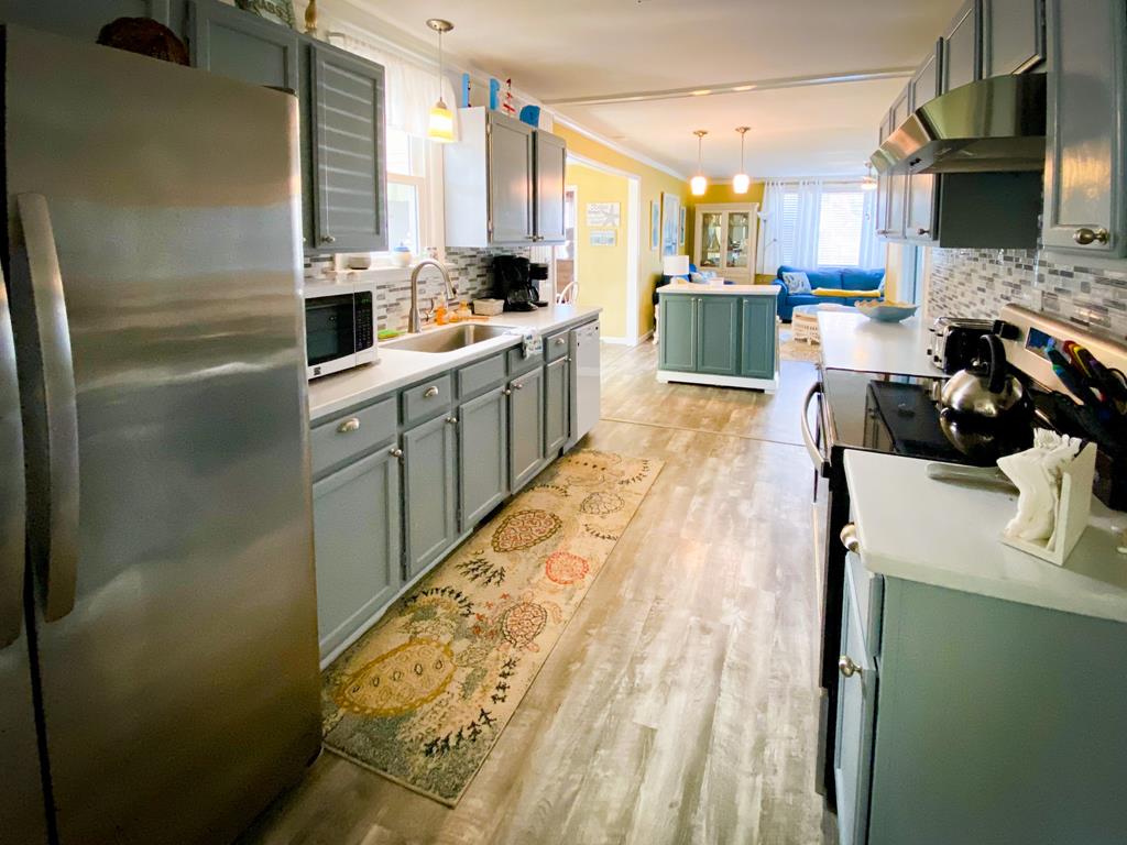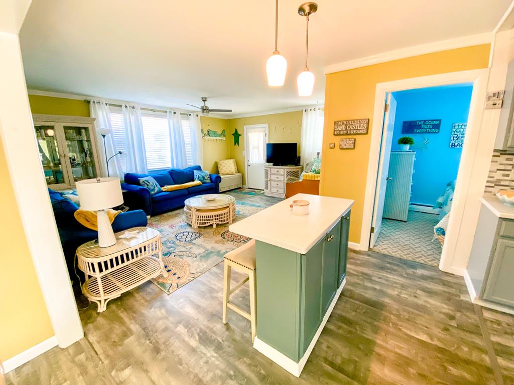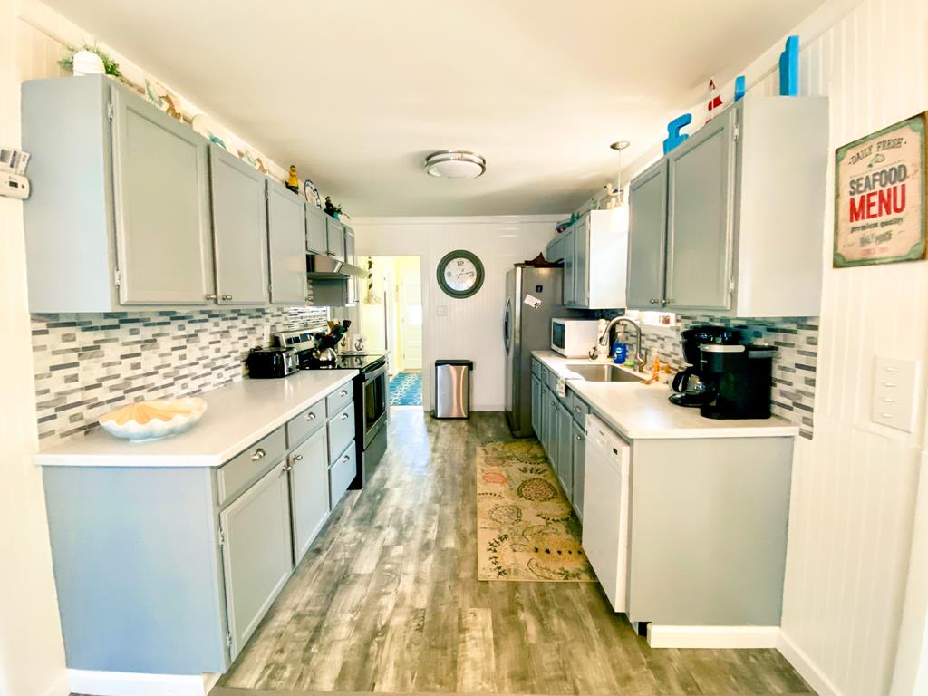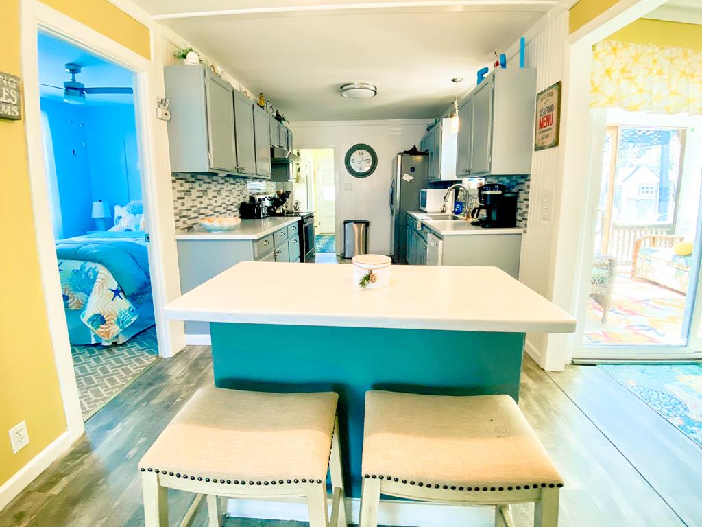 Check out this darling bayside cottage, just a few short blocks from the breezy shores of the Delaware Bay! This bright and colorful beach house has 3 bedrooms and 2 full bathrooms. The newly renovated kitchen has all modern appliances. There is a dining room and spacious living room for game nights and making memories! The primary bedroom has a king size bed with an full size en-suite bathroom. Down the hall you will find two more bedrooms and another full bathroom. The second bedroom has a queen size bed. The third bedroom has a twin size bed with a trundle, which also has the option of converting into a king size bed. If you like spending your time outdoors, this is the home for you. There is an attached screened in porch; perfect for enjoying your summer read with a morning cup of coffee. As well as a sun deck and outside seating for 6 people to have a BBQ using the included gas grill. The entire backyard is fenced in. Parking can accommodate 3 cars, 2 in the driveway and 1 in front of the home on the street. There are 6 beach chairs and one umbrella provided! No central A/C, there are 4 window units.