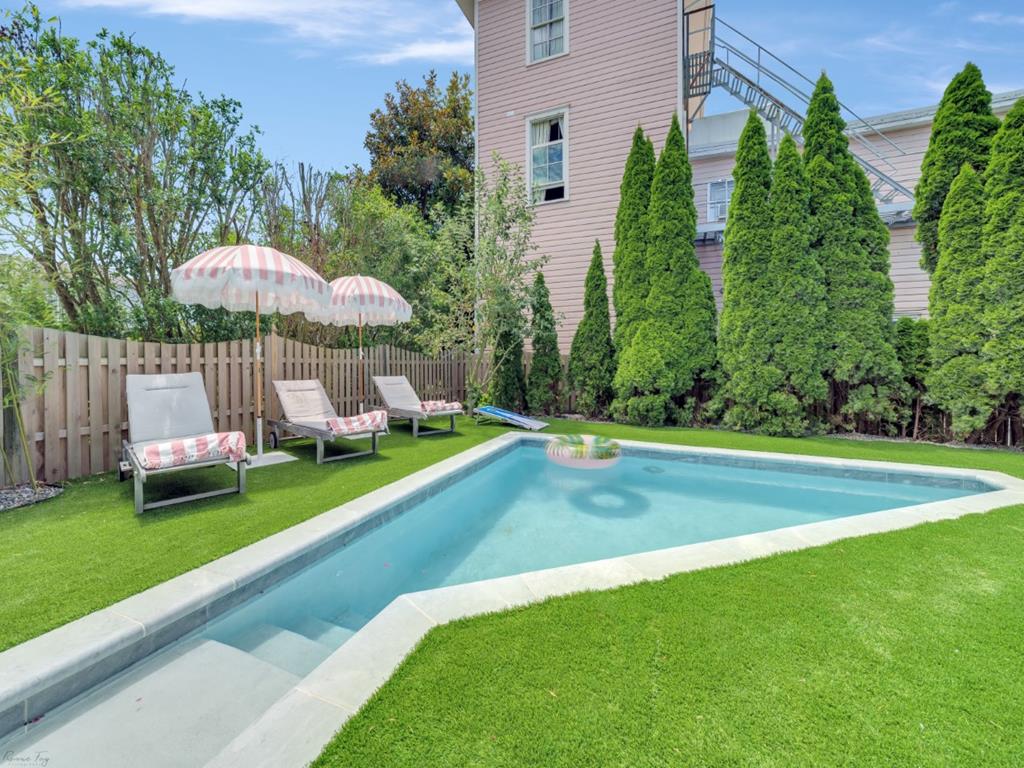 If you are going to vacation, why not vacation in style? Welcome to 10 North Street, an newly renovated, contemporary home! This rental is a 5 and 1/2 bath, sleeping 16 people. The private backyard has a custom shaped cocktail pool and outside shower, perfect for cooling down after the beach during a hot Cape May day. This home is located steps away from the center of town and two quick blocks from the beach, an ideal location for walking to absolutely EVERYTHING! The one way street provides a tranquil setting while you enjoy the wrap around porch.