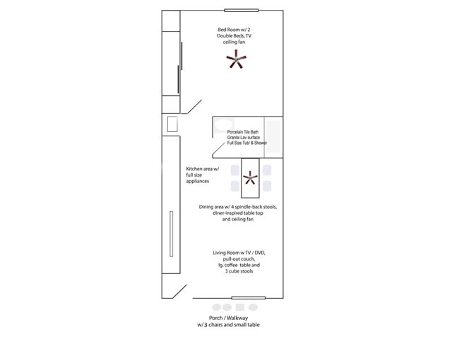 Appliances: Blender, DVD Player, Iron, Coffee Maker, Microwave, Television, Oven / Stove, Toaster, Refrigerator, Washer/Dryer